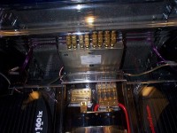 | Für Fahrzeuge, die an späteren Wettbewerben teilnehmen sollen, empfiehlt sich der Einsatz von Plexiglas.      Bei diesem Mercedes wurden die Verstärker, die Pufferungselkos und die DSP Blackbox in einem Rack aus Plexiglas integriert.     Diese Art der Installation bedarf jedoch Vorkenntnisse im Umgang mit Plexiglas.Für Neulinge empfehlen wir daher unseren Kauf Video, in dem der Umgang mit Plexiglas genausten beschrieben wird.